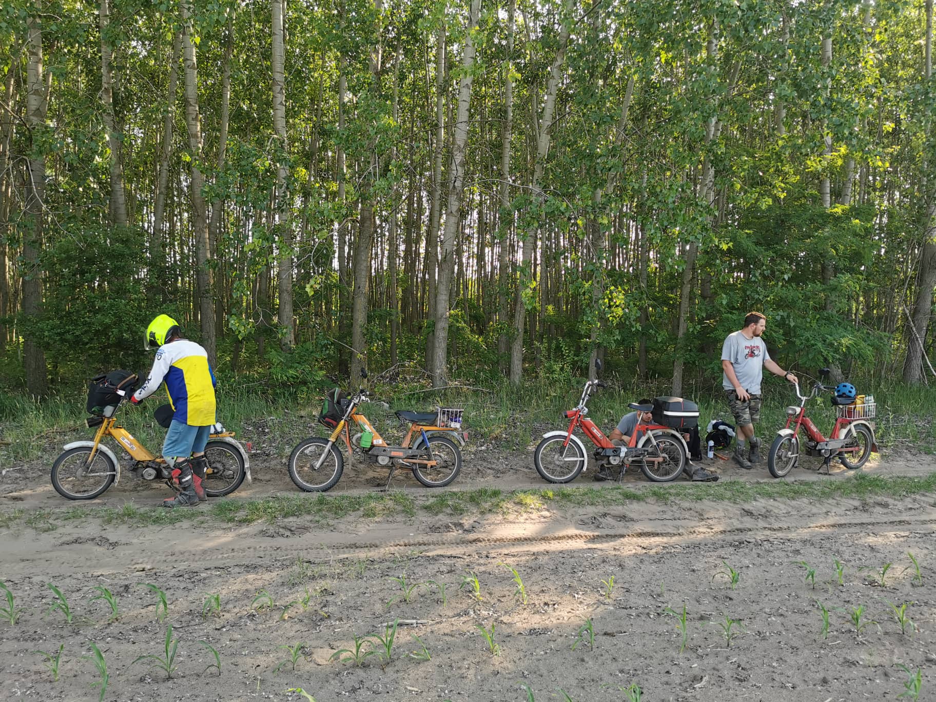 Sziasztok. Akkor egy kis élménybeszámoló. Ála verhovina, mint tudjátok hogy ez a kis ócskavas már sokadszorra teljesítette a rallyt. A tavalyi rallyn mindössze annyi hibája keletkezett, hogy leszakadt róla az apámtól a kettes átlag tábla. Az is csak hazafelé az utánfutón, mert rázta a menetszél. Hazaérve úgy ahogy volt bedobtam a sufniba és ott várt egészen a tegnapi napig. Jó, a kerekei közben leengedtek, de ha hiszitek, hanem a tavalyi benzinnel egy kis szívató után egyetlen rúgásra beindult. Úgyhogy szerszámkészlet? Tartalék alkatrész? Ugyan minek? Nem is vittem és nem is kellett. Az elsők között indultam 4-es rajtszámmal. A szakadó esőt és a sarat nem szerette, mert beázott a gyertyapipa, de ment volna még csak, amikor megálltunk gyorsan kihűlt és nem párolgott róla a víz. Nehezen akart újra beindulni. Már azt hittem, hogy szerelni kell. Hernádi Sanyi barátom felvezetésével (Riga 16) lassan fogytak a kilométerek. Végig teljes gázon max. 39 km/óra. Persze csak, ha kitudott pörögni, mert még a vizes fű, vagy a kicsi homok is visszafogta. Nagyobb homokban egyes és futás mellette, mert ha ráültem el sem indult. Sokan megelőztek, de én nem bántam, csak aggódtam értük mert páran úgy hajtottak, hogy az már veszélyes volt. De hát én is voltam fiatal! Aztán kb. 90 km-nél utolért minket a fiam, megelőzött. Majd olyan 140 km-nél mi értük őt utol, mert elfelejtett tankolni. Azt hitte elég lesz. Együtt kerestünk egy másik kutat. Apa most már be fogunk érni? Optimizmussal, együtt mentünk tovább. Aztán kb. 160 km-nél a fiam lánca elszakadt. Mindenáron meg akarta javítani. Nehezen látta be, hogy nem fog menni, mert nincs hozzá semmink. De akkor ő nem kap emléklapot !!! Úgyhogy vontatnom kellett? Homokban? Verhovinával??? Még viccnek is rossz!!! De azt mondta, akkor ő végig tolja. Hülye vagy fiam 40 km-t??? Nem volt szívem otthagyni. Kb. 5 km volt a műútig. Egyes csuma, lábbal hajtva, mint a békák, iszonyat volt. Talán a 13. ellenőrzőpont volt? Gyerek, ez így nem fog menni. Talán aszfalton, de még úgy se biztos. Úgyhogy Taki neked bevallom, ha nem mondod el senkinek az utolsó két ellenőrző pontot kihagytuk.