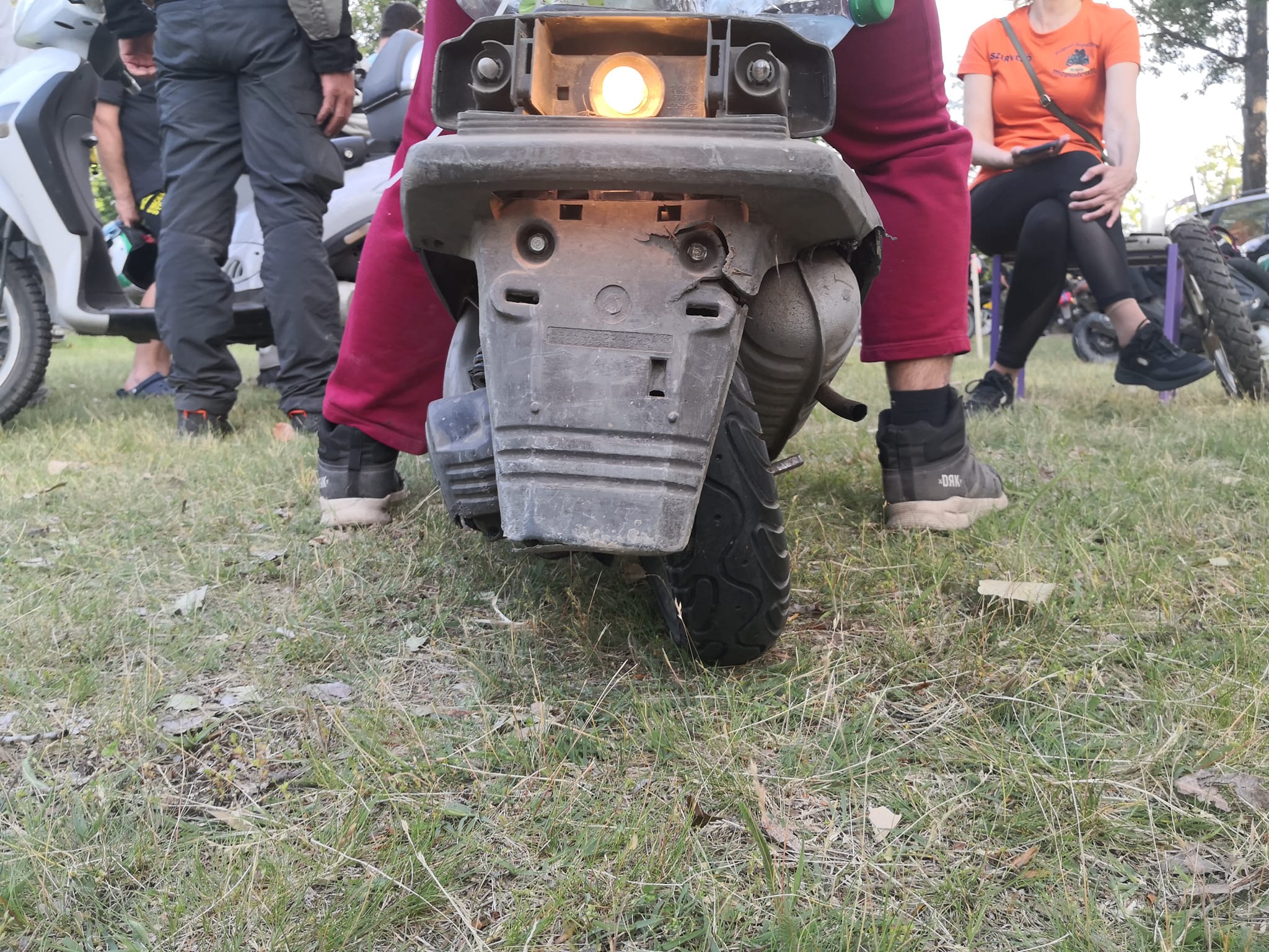 Először a gépátvétel: Lámpa megvan, gumi megvan, tükör megvan (nem sokon múlt, hogy elhagyom) duda az is megvan. Jöhetett a vizes feladat: Számba vettem a kancsót tele vízzel szinte egy csepp se ment ki viszonylag gyorsan körbe mentem, mert azt hittem itt is az idő számít. Végét kicsit meg cifráztam egy nagy fékezéssel és egy csepp se ment ki ugye Taki?! De legalább lehűtöttem magam a következő feladat előtt. Kerék pumpálás hozott pumpával: Fejvakarás, mert csak defektjavító sprayvel készültünk vagy hárommal. Egy kis fejvakarás és eszembe jutott még a 2019-e mopedrallyra beépítettem egy bicikli pumpát az ülésbe. Soha nem használtam még csak bíztam benne hogy működik. Hát mit ne mondja működött és sok ember arcára mosolyt csaltam a pumpálási technikámmal. Köszönöm a biztatást és a sok jó tanácsot! Én is meglepődtem mire volt képes ez a kis pumpa.